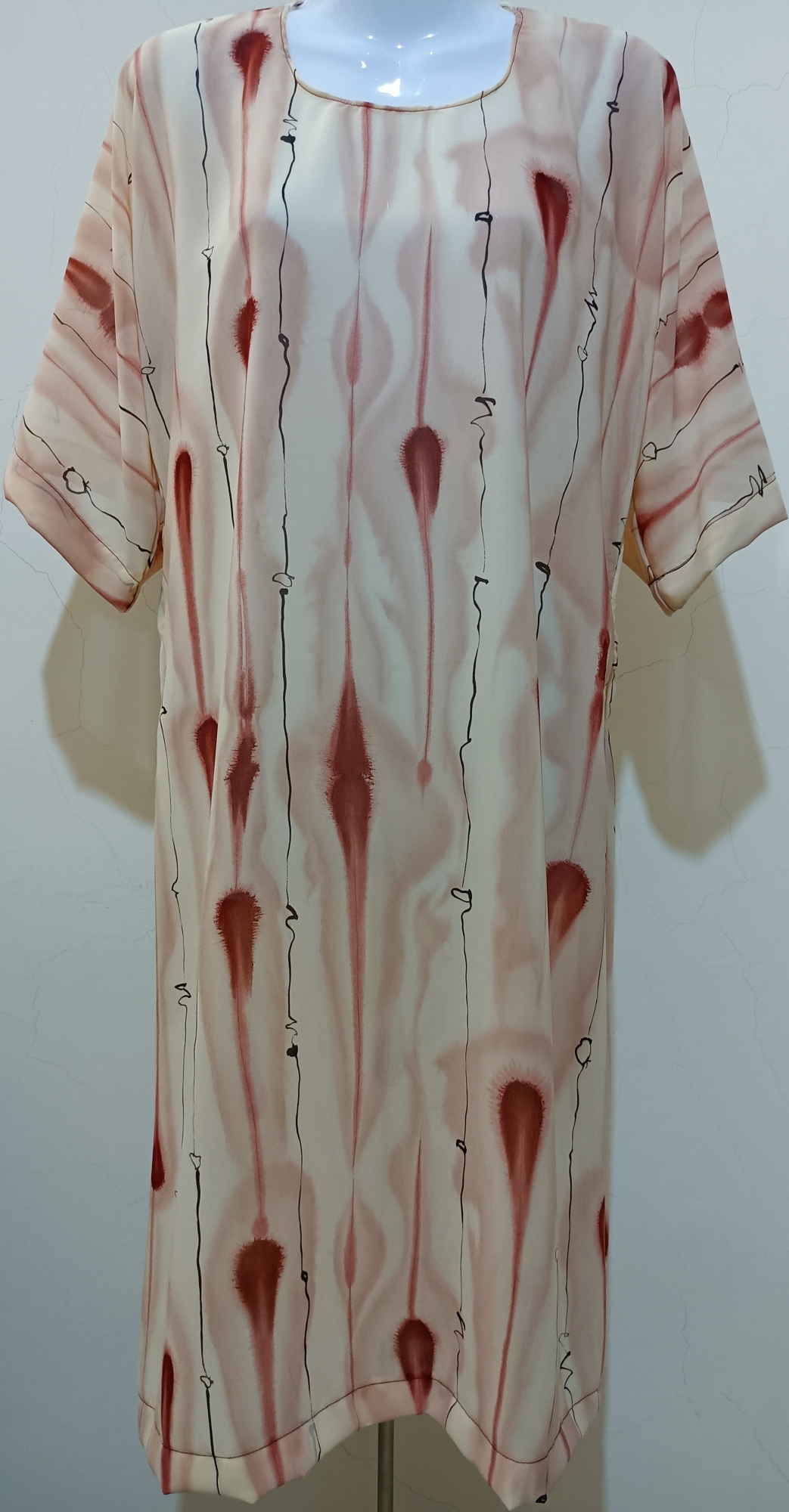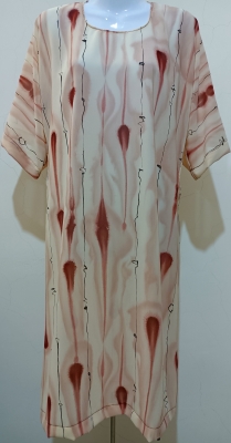 Silk Cotten Cream Red Pattern Dress