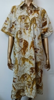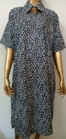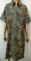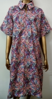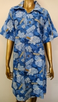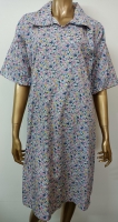 Purple Flowers Blue Leaves Shirt Sleeve Dress