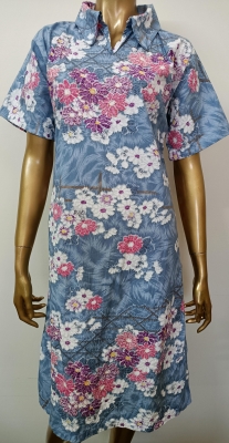 White Purple Red Flowers Blue Dress